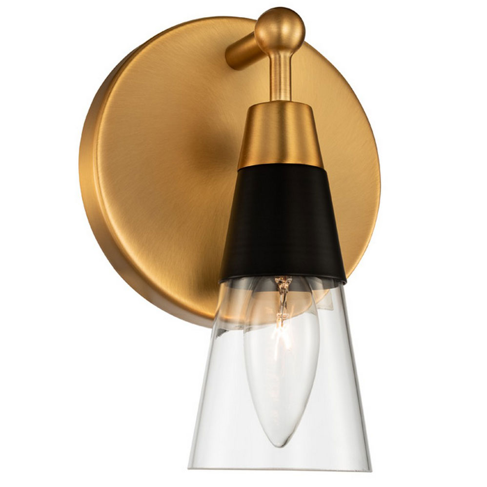 Kalco 513131BNB Ponti - 1 Light ADA Bath Vanity, Matte Black/New Brass Finish with Clear Glass