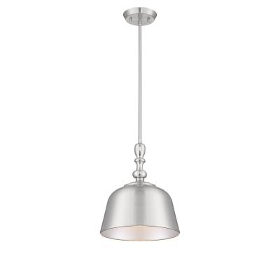 This Savoy House Berg 1-light pendant perfectly blends bold industrial style with a touch of traditional allure. It offers an oversized metal shade that is finished in satin nickel, both inside and out, for a bright, focused glow. Above the shade, hardware details recall the curves of an elegant candlestick. The Berg pendant is perfect for applications where you would like a more directed beam of light, like over a kitchen island. This fixture is 12" in width and has an adjustable height that ranges from 14" to 45.5". Uses one standard size light bulb of up to 60 watts (not included).
