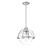 This Savoy House Pendleton 1-light pendant is a smart way to pep up the illumination and style in any room. It showcases a large orb of clear glass that isopen at the bottom, allowing for more direct light and making it easy to replace the bulb. Metal bands bisect the shade and help hold it to the fixture’s base. Try using this fixture in kitchens, foyers, bedrooms and home offices, though truly the possibilities are endless. Finished in satin nickel. This fixture is 14" wide and has an adjustable height that ranges from 14" to 45.5". Uses a standard size bulb of up to 60 watts (not included).