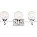 The magic of this Savoy House Medina 3-light bath bar rests in the orbs of white strie glass that seem to swirllike a crystal ball. Because these orbsare so magical, the rest of the light is subtle and understated. Small baubles of clear glass echo their larger counterparts and the hardware for this fixture has been thoughtfully moved to the side of the backplate so as not to interrupt the look. Finished in shining satin nickel. This fixture is 24 Inch wide and 9.25 Inch tall. It extends 7.5 Inch from the wall. Uses 3 standard size bulbs of up to 60 watts each (not included). Bathroom/Bed Room/Dining Room/Living Room/Family Room/Great Room/Kitchen/Foyer/Entryway/Stairway/Hallway/Office/Billiard Room/Media Room / Mounting Direction: Reversible / Assembly Required: Yes / Dimable: Yes. Assembly Required: Yes / Mounting Direction: Up or Down / Back Plate Height: 4.50 / Back Plate Width: 7.88 / Dimable: Yes / Shade Included: Yes / Shade Dimensions: 6 x 6 x 6.