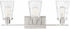 If you want a fresh, elegant lighting look in your bathroom, the Savoy House Vaughan 3-light bath bar is the perfect choice. Its sleek design showcases tall fluted shades of clear water glass that are held snugly in place with clasps and screws. The satin nickel finish works beautifully with many different colors of bathroom furnishings and hardware. This fixture is 23.75" wide and 9.25" tall. It extends 6" from the wall. Uses 3 standard size bulbs of up to 60 watts each (not included).