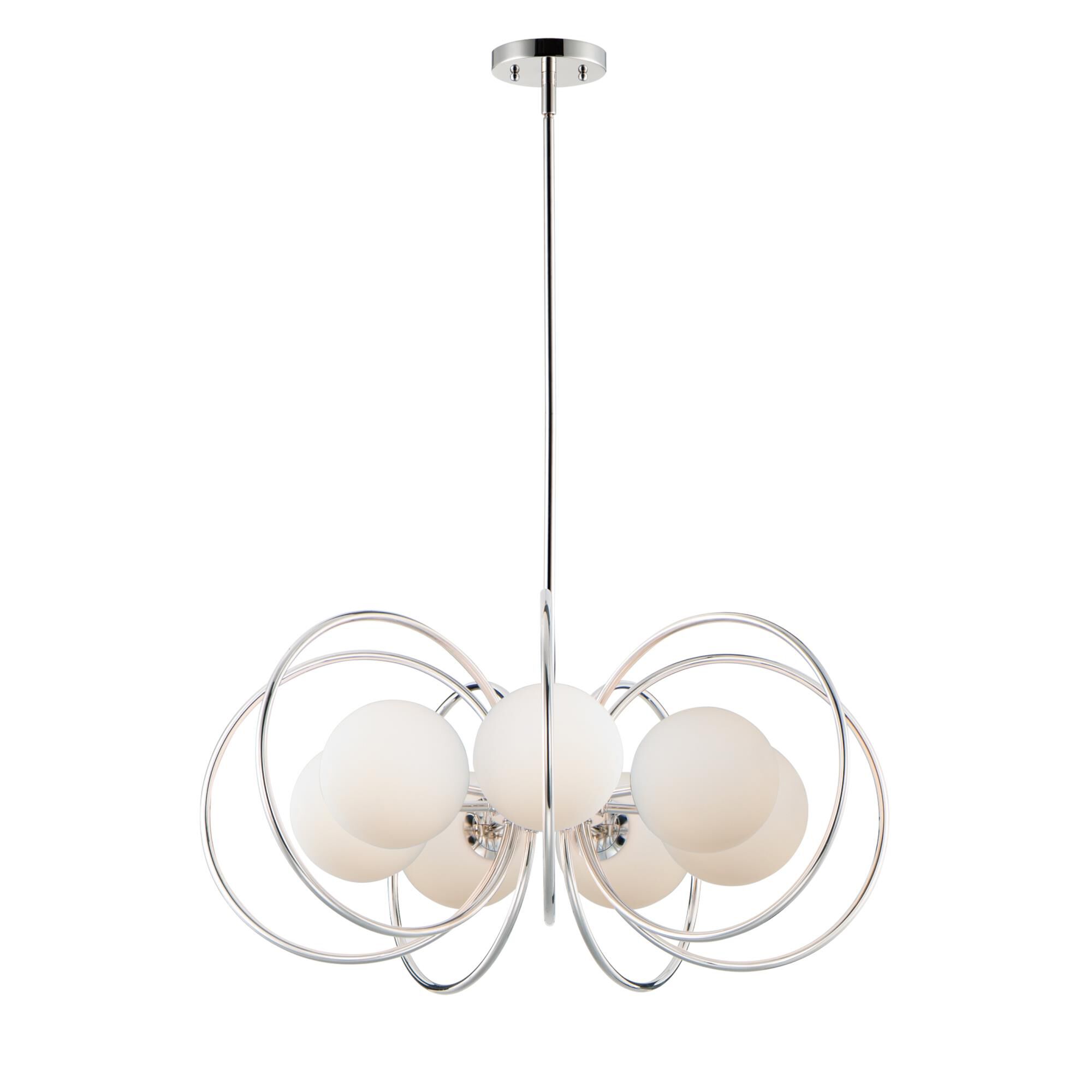 ET2 E12517-92PN Revolution Modern Satin White Glass Ball Round Pendant Ceiling Lighting, 7-Light 420 Watts, 14"H x 29"W, Polished Nickel