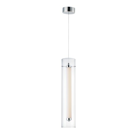 ET2 Lighting-E23311-24PC-Collection: Centrum, Material: Acrylic, Finish Color: Polished Chrome, Width: 5", Height: 5", Length: 24.75", Lamping Type: LED, Number Of Bulbs: 1, Wattage: 24 Watts, Dimmable: No, Moisture Rating: Dry Rated, Desc: Clear glass outer tube encases a white acrylic inner tube capped with polished Chrome caps creates this clean contemporary design. Powered by high output LED which is nicely diffused make this collection suitable for both residential and commercial applications. Warranty: 5 YearsColor Temperature: 3000 / Lumens: 1920 / CRI: 80+ / Rated Life: 50000 Hours / Canopy Included: Yes / Shade Included: Yes / Canopy Diameter: 4.75 x 4.75 x 1.75. ,-Centrum-24W 1 LED Medium Pendant-5 Inches wide by 5 inches high