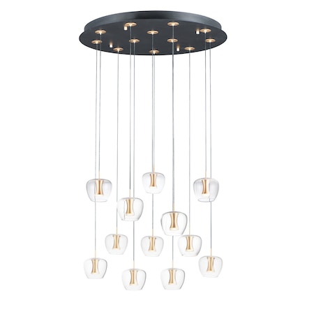 ET2 E24167-18BKGLD Newton Floating Clear Glass Apple Round LED Pendant Ceiling Lighting, 12-Light 30 Total Watts, 6" H x 28" W, Black/Gold