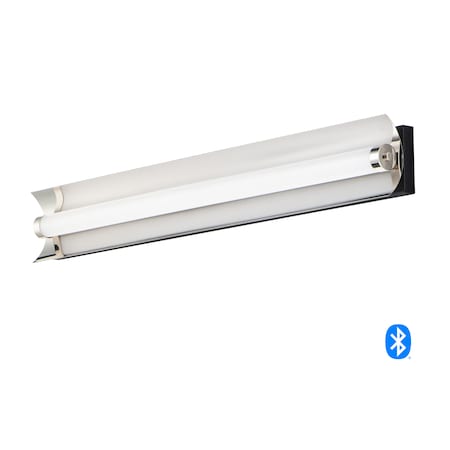 ET2 Lighting-E25122-01BKPN-Collection: Reflect, Material: Aluminum, Finish Color: Black/Polished Nickel, Width: 30", Height: 5.5", Length: 12", Depth: 2.75", Height From Outlet Box: 3", Backplate Width: 30", Backplate Length: 4.25", Lamping Type: LED, Number Of Bulbs: 2, Wattage: 11.5 Watts, Dimmable: No, Moisture Rating: Damp Rated, Desc: A foldable frame of Black support Polished Nickel reflectors behind acrylic tubes which conceal LED modules that project ample light into the room. The bath vanities include our Bluetooth feature that allows for change in color temperature as well as dim ability. Warranty: 5 YearsColor Temperature: 2700/5000 / Lumens: 1900 / CRI: 90 / Rated Life: 25000 Hours / Mounting Direction: Horizontal/Vertical / Shade Included: Yes. ,-Reflect-23W 2 LED Bath Vanity-30 Inches wide by 5.5 inches high