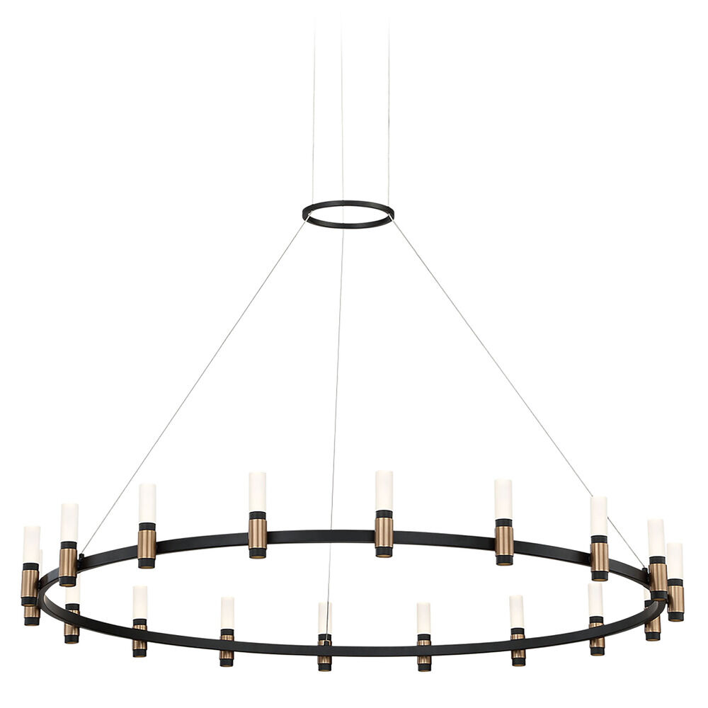 Eurofase Lighting-37044-015-Collection: Albany, Material: Metal, Finish Color: Deep Black/Brass, Width: 45.25", Height: 5.25", Chain Length: 180", Lamping Type: LED, Number Of Bulbs: 1, Wattage: 81 Watts, Cri: 90, Color Temperature: 3000 Kelvin, Lumens: 2880, Dimmable: Yes, Moisture Rating: Dry Rated, Desc: Albany 18-Light Led Chandelier, Deep Black/Brass Finish, Brass Accents With Led Light Framed By Black Mesh With Brass Accents. Product Type: Chandelier / Fixture Style: Contemporary / Fixture Design: Wheel Chandelier / Shade Shape: Cylinder / Shade Type: Diffused / Hanging Support Type: Wire / Hanging Support Length: 180 Inches / Cable/Wire Length: 180 Inches / Chain Length: 180 Inches / Slope Ceiling Compatible: Yes / Location Type: Dry Location / Bulbs Included: Yes / Lumens: 2880 / Bulb Kelvin: 3000 / Dimmable: Yes / More Information: 81W/Led 3000K/2880Lm (Dimmable) / More Information: Soft White Cylinder Acrylic Included / More Information: Hanging Support Type: Wire / More Information: Rated For Dry Locations / Canopy Backplate Height: 2 Inches / Canopy Backplate Diameter: 11 Inches . ,-Albany Chandelier 1 Light