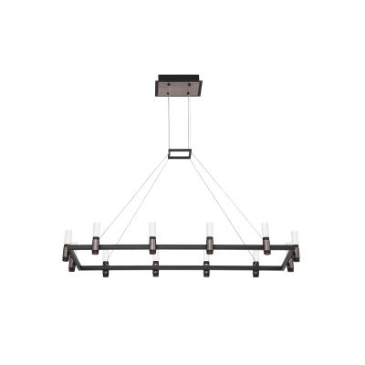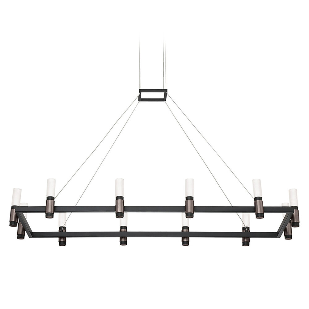 Eurofase 37047-016 Albany Industrial Vintage LED Rectangular Island Chandelier, 12-Light 54 Total Watts, 5" H x 16" W x 40" L, Satin Nickel/Black