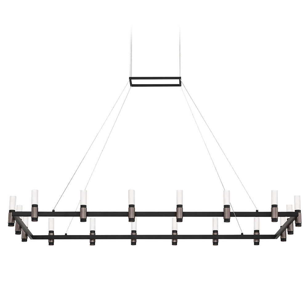 Eurofase Lighting-37048-013-Collection: Albany, Material: Metal, Finish Color: Satin Nickel/Black, Width: 27", Height: 5.25", Length: 51.75", Chain Length: 96", Lamping Type: LED, Number Of Bulbs: 1, Wattage: 83 Watts, Cri: 90, Color Temperature: 3000 Kelvin, Lumens: 2880, Dimmable: Yes, Moisture Rating: Dry Rated, Desc: Altamont 18-Light Rectangular Led Chandelier, Satin Nickel/Black Finish With Tubes Of Led Light Housed By Sleek Black And Nickel Candleholders. Product Type: Chandelier / Fixture Style: Contemporary / Hanging Support Type: Wire / Hanging Support Length: 96 Inches / Cable/Wire Length: 96 Inches / Chain Length: 96 Inches / Slope Ceiling Compatible: Yes / Location Type: Dry Location / Bulbs Included: Yes / Lumens: 2880 / Bulb Kelvin: 3000 / Dimmable: Yes / More Information: 83W/Led 3000K/2880Lm (Dimmable) / More Information: Acrylic Included / More Information: Hanging Support Type: Wire / More Information: Rated For Dry Locations / Canopy Backplate Length: 12.5 Inches / Canopy Backplate Height: 2 Inches / Canopy Backplate Width: 6.25 Inches . ,-Albany Rectangular Chandelier 1 Light