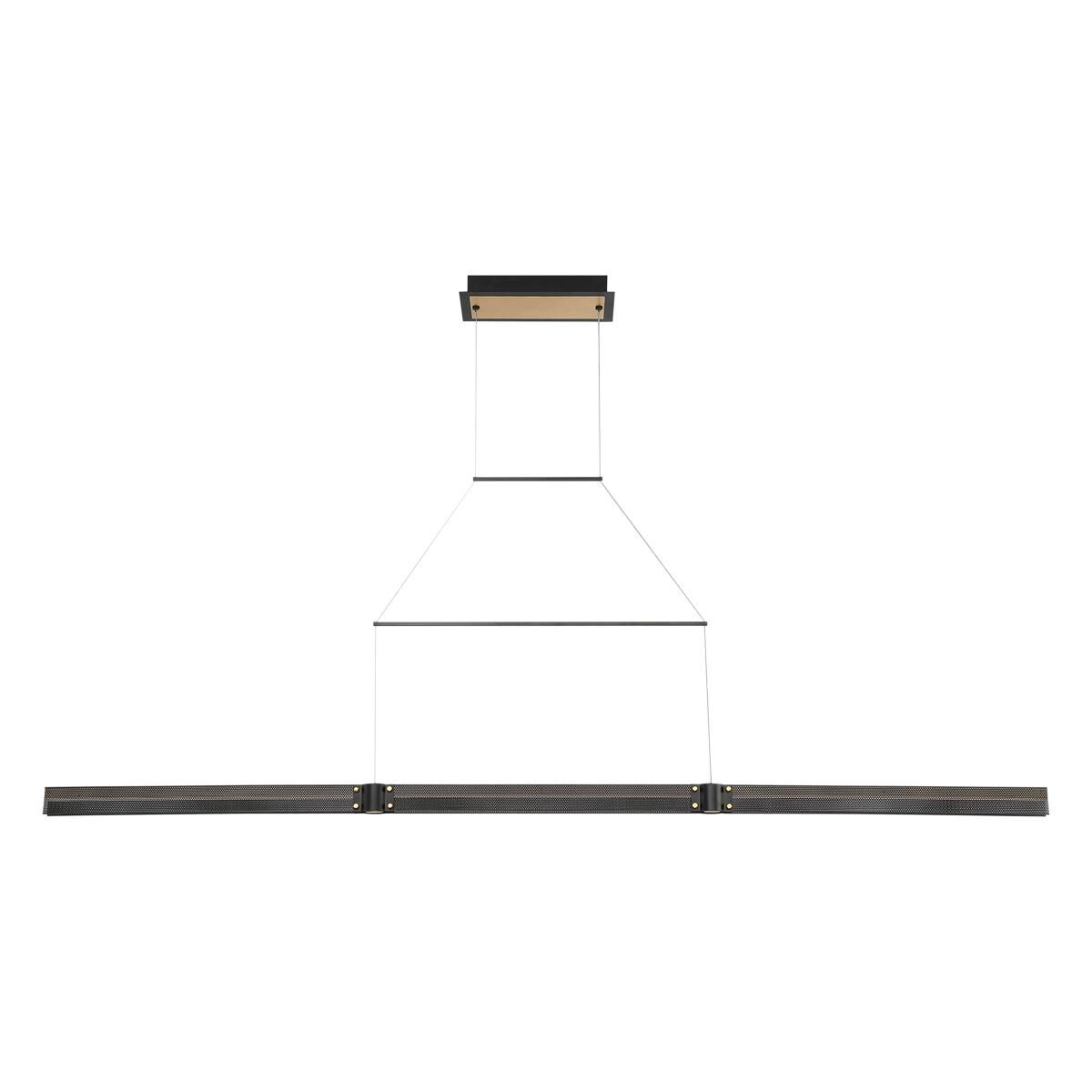 Eurofase Lighting-37059-019-Collection: Admiral, Material: Metal, Finish Color: Matte Black/Gold Painting, Width: 2", Height: 2", Length: 71.25", Chain Length: 96", Lamping Type: LED, Number Of Bulbs: 1, Wattage: 34 Watts, Cri: 90, Color Temperature: 3000 Kelvin, Lumens: 1280, Dimmable: Yes, Moisture Rating: Dry Rated, Desc: Admiral Large Linear Led Chandelier, Matte Black/Brass Finish, Brass Accents With Led Light Framed By Black Mesh With Brass Accents. Product Type: Chandelier / Fixture Style: Contemporary / Hanging Support Type: Wire / Hanging Support Length: 96 Inches / Cable/Wire Length: 96 Inches / Chain Length: 96 Inches / Slope Ceiling Compatible: Yes / Location Type: Dry Location / Bulbs Included: Yes / Lumens: 1280 / Bulb Kelvin: 3000 / Dimmable: Yes / More Information: 34W/Led 3000K/1280Lm (Dimmable) / More Information: Hanging Support Type: Wire / More Information: Hanging Support Type: Wire / More Information: Rated For Dry Locations / Canopy Backplate Length: 11.75 Inches / Canopy Backplate Height: 1.75 Inches / Canopy Backplate Width: 6 Inches . ,-Admiral Linear Chandelier 1 Light