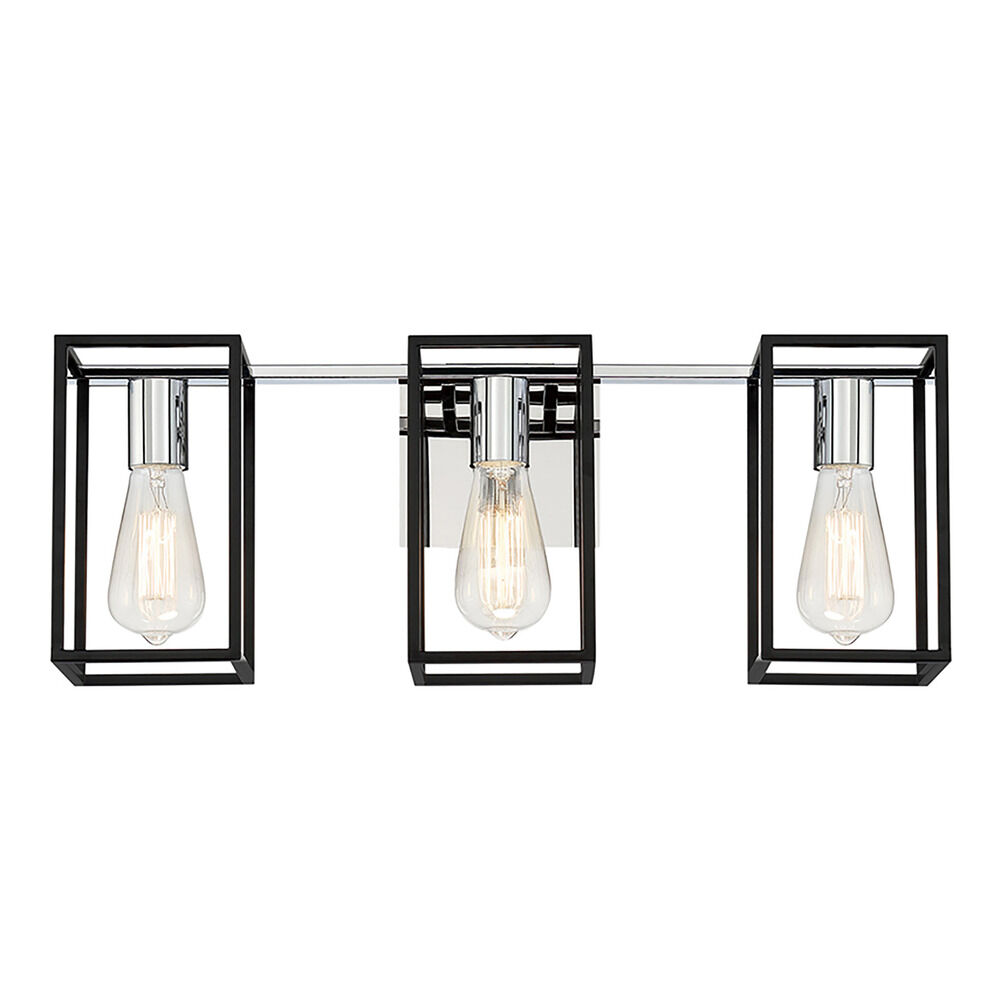 Eurofase 37116-019 Stafford Modern Industrial Open Frame Mixed Metal Bath Vanity Wall Mount, 3-Light 180 Total Watts, 9" H x 23" W, Chrome/Black