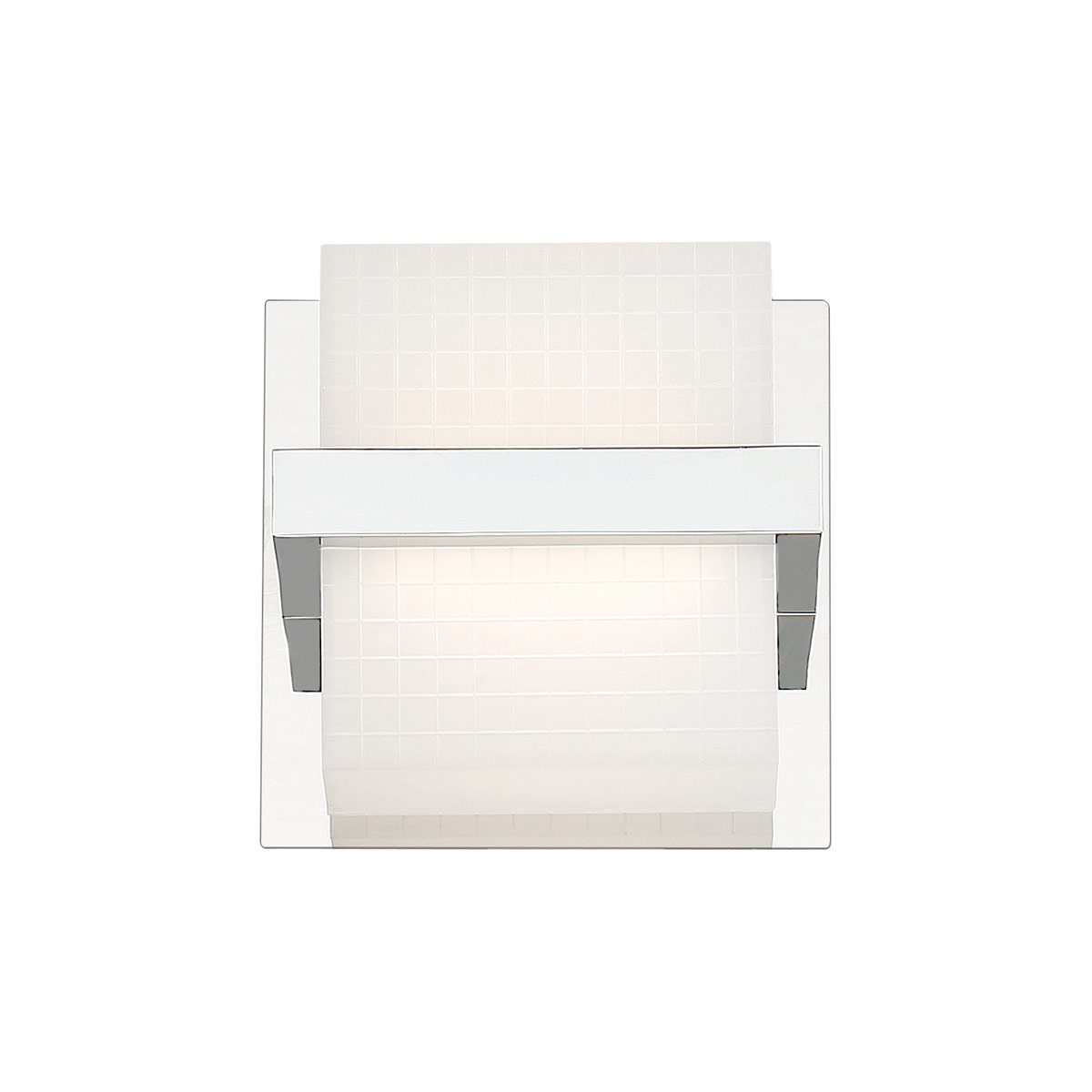 Collection: Raylan, Material: Metal, Finish Color: Chrome, Width: 5.25", Height: 5.25", Depth: 4.25", Lamping Type: LED, Number Of Bulbs: 1, Wattage: 8 Watts, Cri: 90, Color Temperature: 3000 Kelvin, Lumens: 550, Dimmable: Yes, Moisture Rating: Dry Rated, Desc: Raylan 1-Light Led Wall Sconce, Chrome Finish With Symmetric Design Flows Throughout This Vanity Light. Product Type: Wall Sconce / Shade Shape: Square/Rectangle / Shade Type: Frosted / Location Type: Dry Location / Bulbs Included: No / Lumens: 550 / Bulb Kelvin: 3000 / Dimmable: Yes / More Information: 8W/Led 3000K/550Lm (Dimmable) / More Information: White Frosted Pc Shades Included / More Information: Rated For Dry Locations . ,