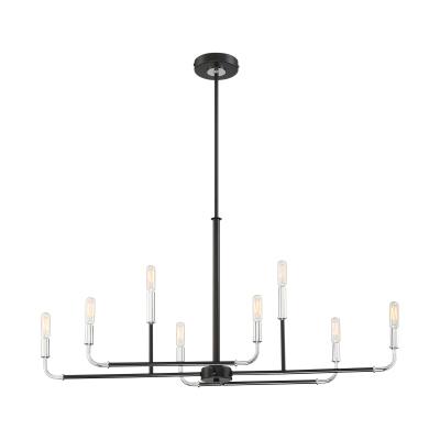 Eurofase Lighting-37129-019-Collection: Percy, Material: Metal, Width/Diameter: 11.75", Height: 17.25", Length: 35.75", Lamp: 8-40w bulb(s), - Desc: Percy 8-Light Oval Chandelier, Chrome/Black Finish With Modern Pipe Chandelier In Black And Chrome Mixed Metals. Product Type: Chandelier / Fixture Style: Contemporary / Fixture Design: Candle Chandelier / Shade Shape: N/A / Shade Type: N/A / Hanging Support Type: Rod / Hanging Support Length: 57 Inches / Chain Length: 57 Inches / Rods Included: 3 Inch+6 Inch+12 Inch+18 Inch+18 Inch / Slope Ceiling Compatible: Yes / Location Type: Dry Location / Bulbs Included: Yes / Dimmable: No / More Information: 8 X 40W Edison Bulbs E12/120V (Included) / More Information: Includes 57 Inch Of Total Downrods / More Information: Rated For Dry Locations / Canopy Backplate Height: 1 Inches / Canopy Backplate Diameter: 4.75 Inches .-Percy Chandelier 8 Light Chrome