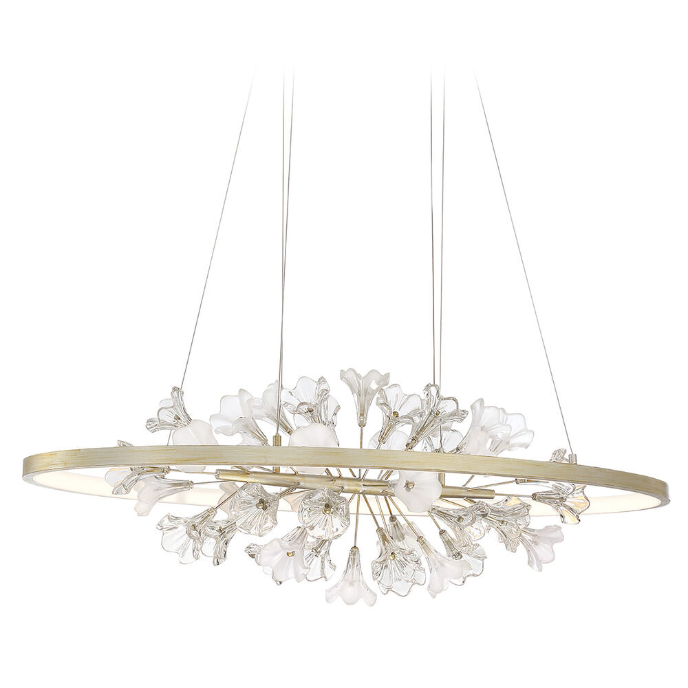 Eurofase 37344-016 Clayton Floating Flowers in The Ring Oval LED Pendant Light, 1-Light 40 Watt, 14" H x 20" W x 43" L, Silver/Brushed Gold