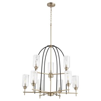 Quorum 607-9-6980 Transitional Nine Light Chandelier from Espy Collection in Brass - Antique Finish,