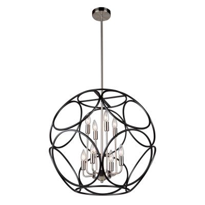 Beautifully styled, the Sorrento collection 8 light chandelier features a circular orb designs comprised of smaller circles. The exterior orb is finished is a luxurious matte black while the interior frame is plated in a satin nickel finish. <UL>Warranty: 5 Years Limited<LI>Room Style: Dining Room/Kitchen/Foyer / No. of Rods: 4 / Sloped Ceiling Adaptable: Yes / Rod Length(s): 12.00 / Dimable: Yes.