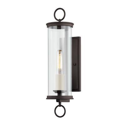 Complete your outdoor space with the clear, cylindrical shade of the Aiden outdoor wall light by Troy Lighting. Hand-crafted aluminum is completed in a beautiful bronze finish. This petite fixture is sure to upgrade your outdoor decor.