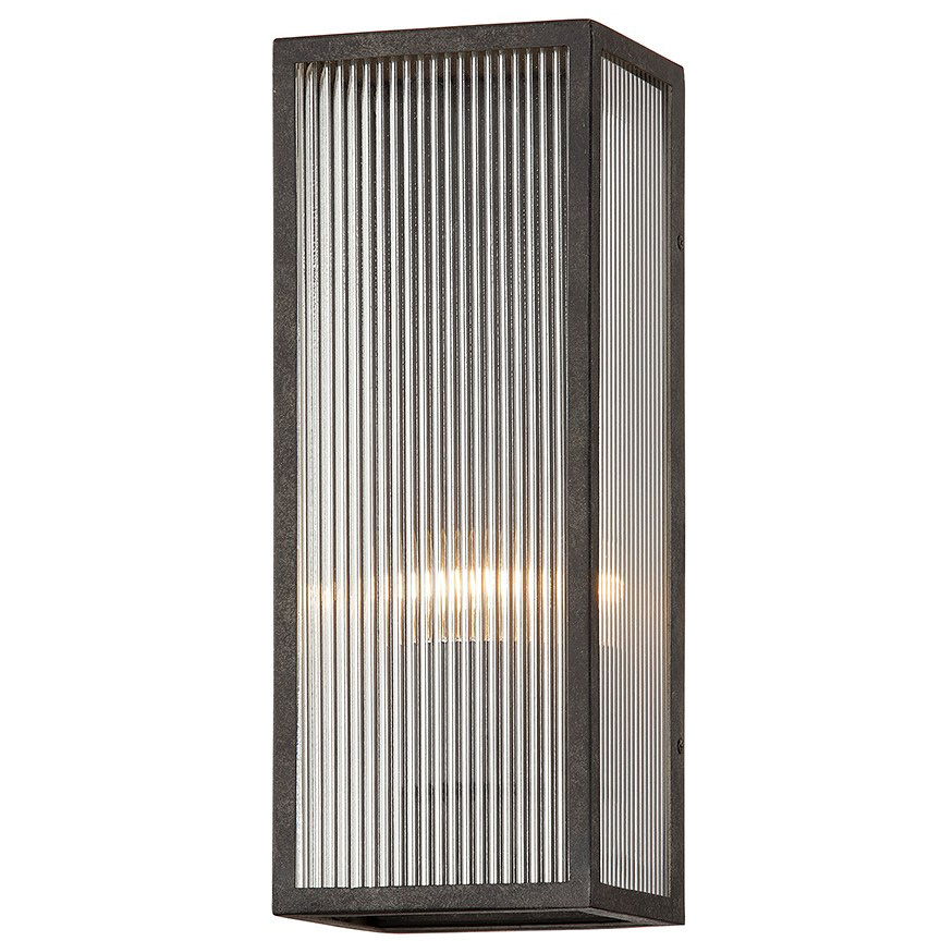 Ribbed glass panels create a textured look for this stylish Tisoni outdoor wall light. From Troy Lighting, this rectangular fixture is a hugely convenient addition to your home's exterior. A strong French iron finish adds a hint of contemporary character to the design.