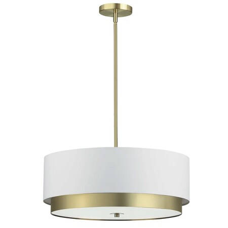 4 Light Large Pendant, Aged Brass with White Shade, Frosted Glass Diffuser