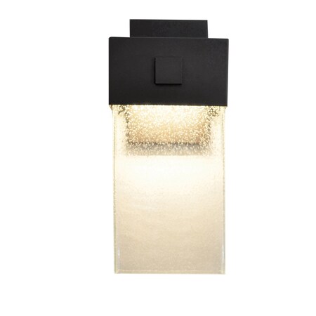 - Textured bronze finish over metal construction. Clear seedy blown glass diffuser.