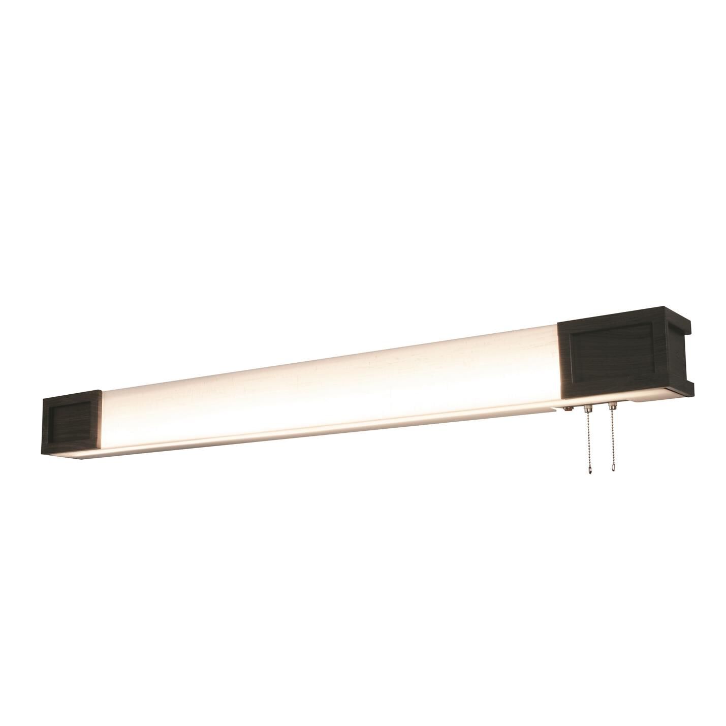 - Contemporary overbed fixture features a walnut finish and 4-way pull switch with night light