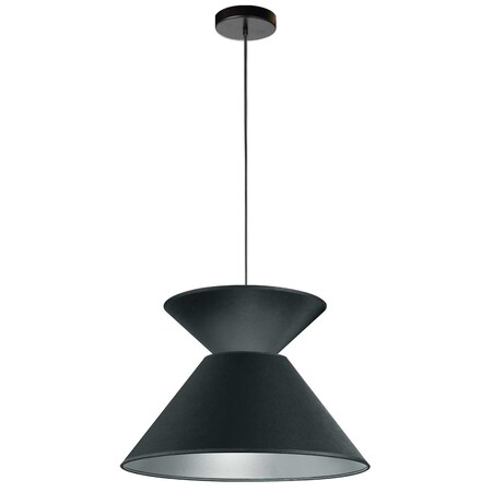 1 Light Patricia Pendant, Matte Black with Black & Silver Shade