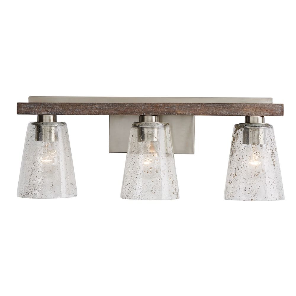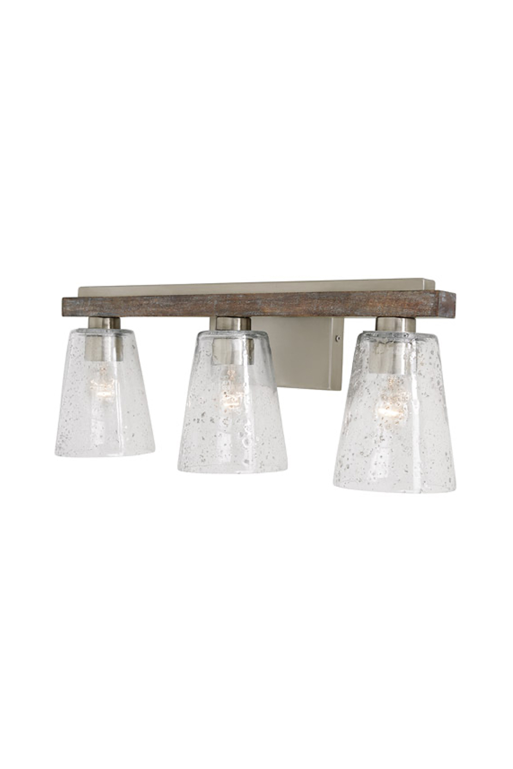 Capital Lighting 140531HN-503 Connor Rustic Clear Stone Seeded Glass Bath Vanity Wall Mount, 3-Light 300 Total Watts, 9" H x 24" W, Black Wash/Matte Nickel