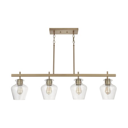 Capital Lighting 838141AD-489 Danes Modern Hand-Blown Clear Glass Island Chandelier/Linear Pendant, 4-Light 400 Total Watts, 11" H x 42" W, Aged Brass