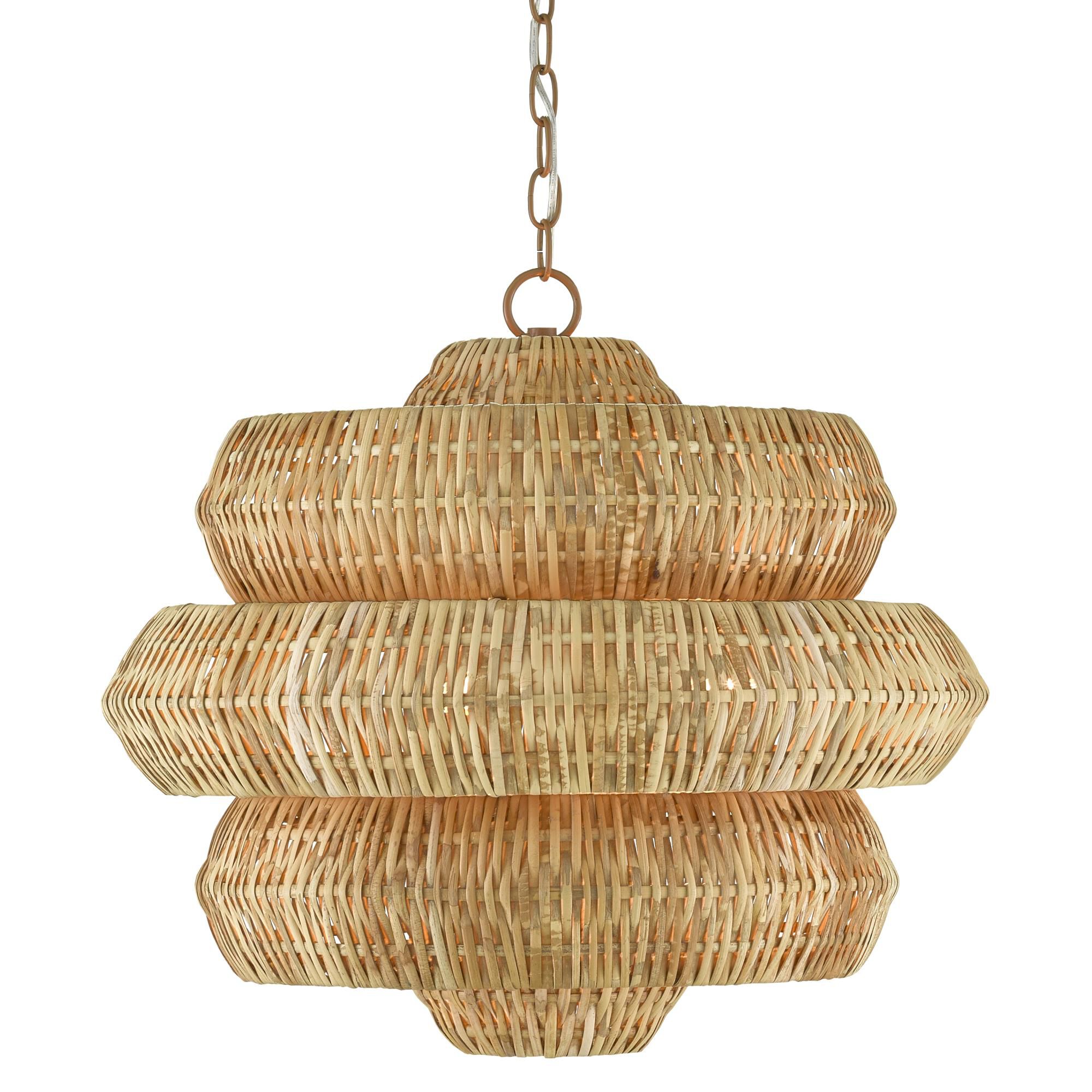Currey and Company 9000-0604 Transitional Three Light Chandelier in Bronze/Dark Finish, Khaki/Natural Rattan
