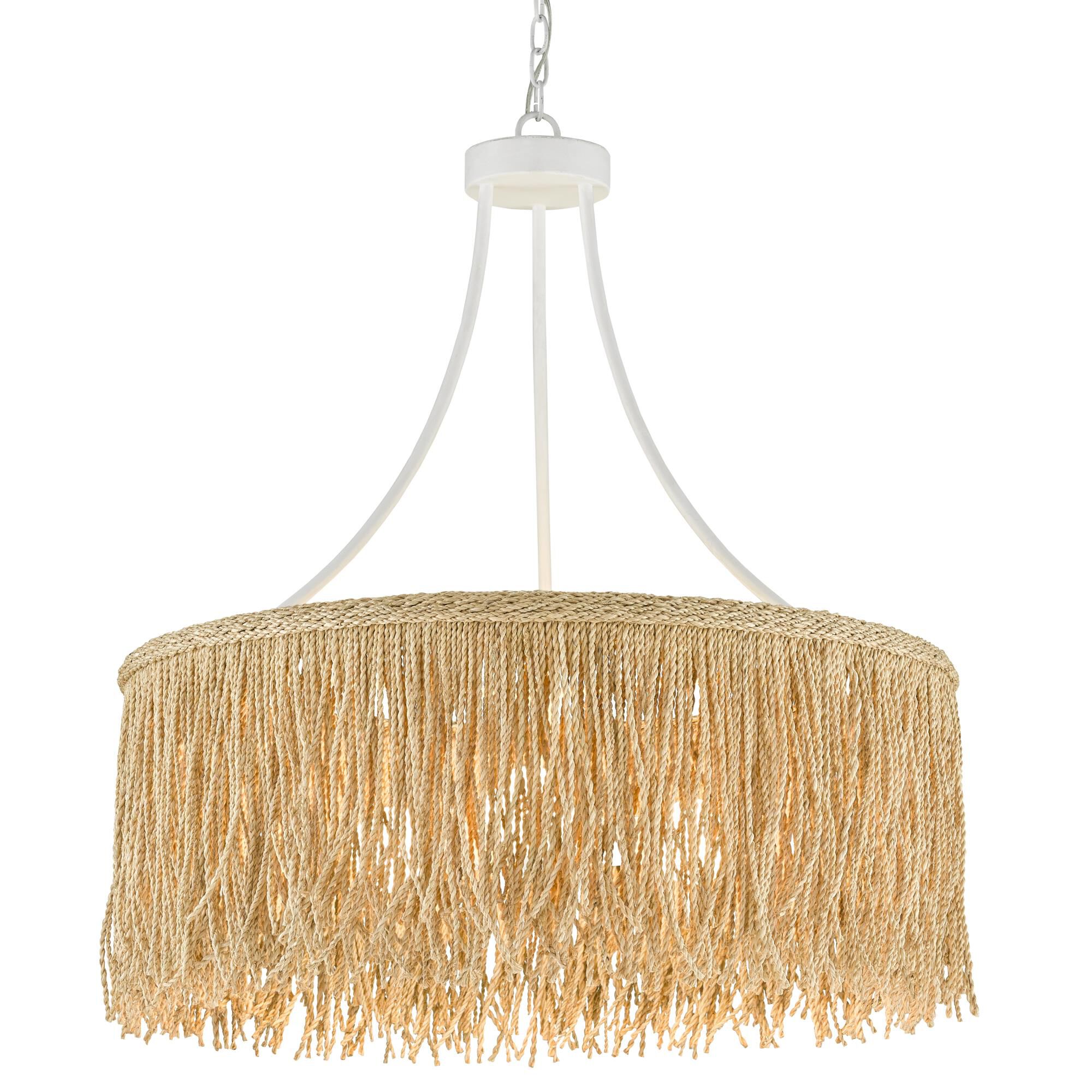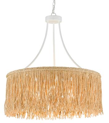 Currey and Company 9000-0648 Transitional Three Light Chandelier Finish, Gesso White/Natural Rope