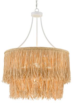 Currey and Company 9000-0649 Transitional Four Light Chandelier Finish, Gesso White/Natural Rope