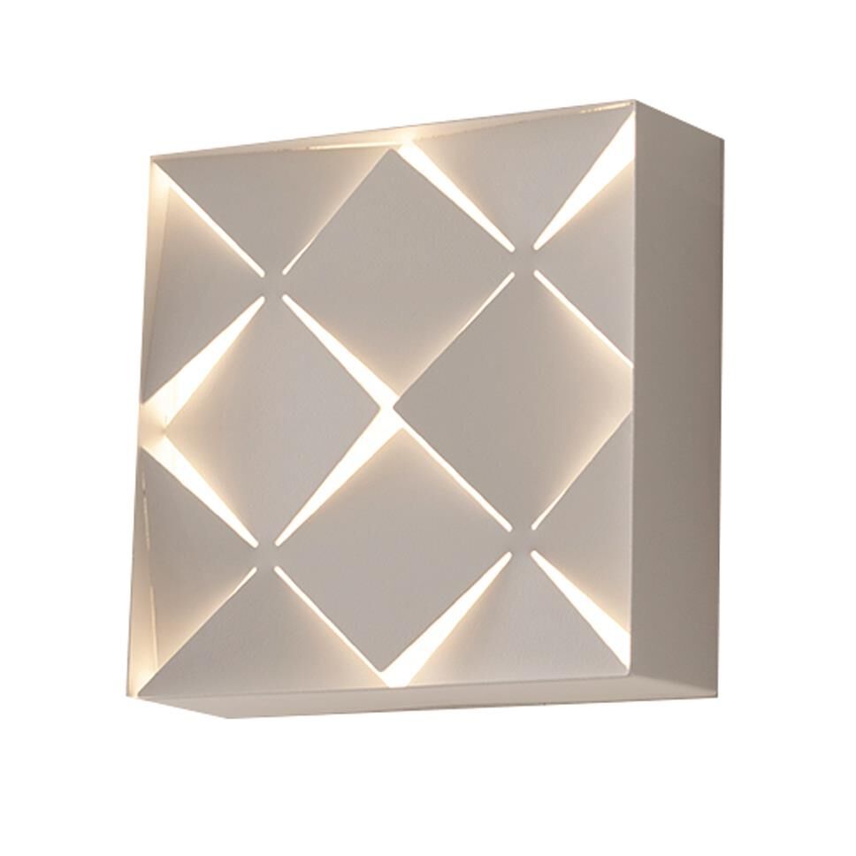 - Unique sconce features a Faceted metal housing with dynamic metal faceplate