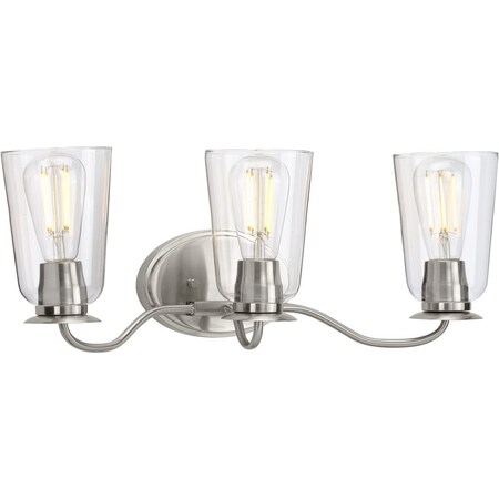- Smooth, curved arms support the light bases and attach to a brushed nickel backplate.