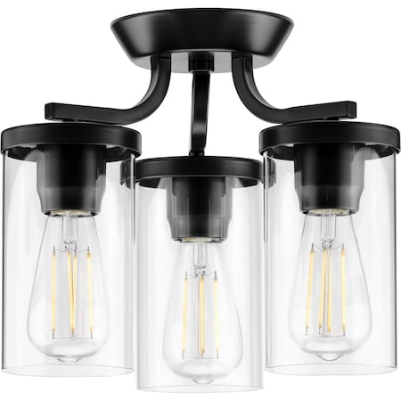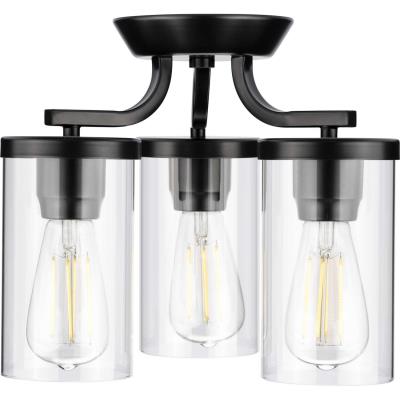 Progress Lighting Lassiter Collection Black Three-Light Semi-Flush Mount,Matte Black