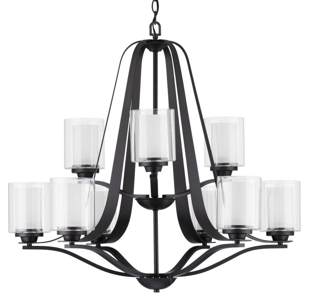 Progress Lighting Kene Collection 9-Light Clear Glass Craftsman Chandelier Light Graphite