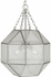 - A geometric frame coated in an understated brushed nickel finish creates an awe-inspiring design.