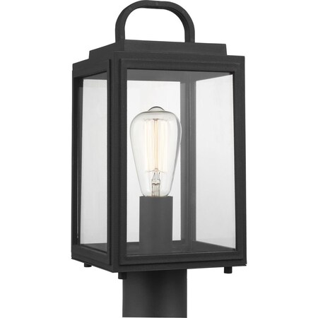 Progress Lighting Grandbury Collection 1-Light Clear Glass Farmhouse Outdoor Post Lantern Light Textured Black