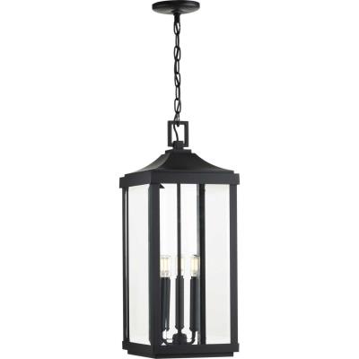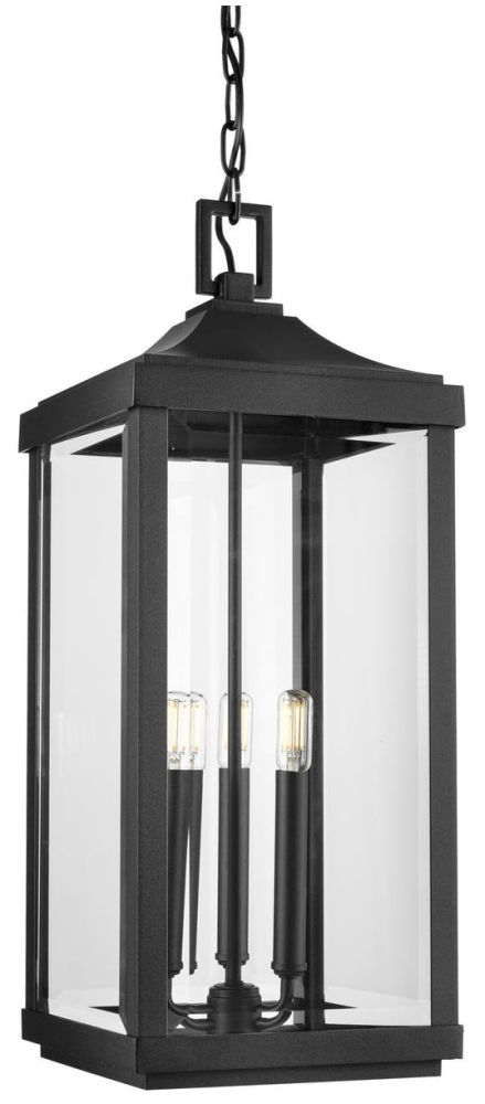 Progress Lighting Gibbes Street Collection 3-Light Clear Beveled Glass New Traditional Outdoor Hanging Lantern Light Textured Black 23.75x9.50x9.50