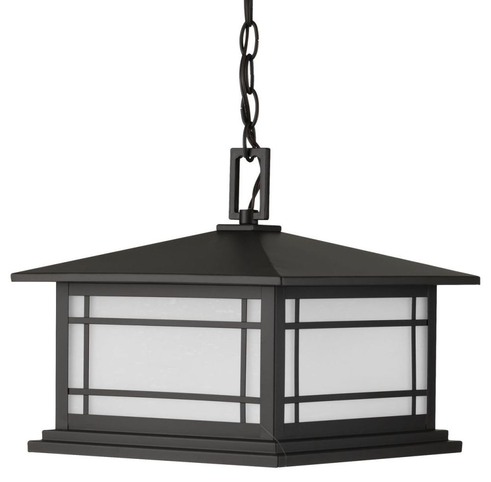 Progress Lighting Oakcliff Collection 1-Light Etched Seeded Glass Craftsman Outdoor Hanging Lantern Light Antique Bronze