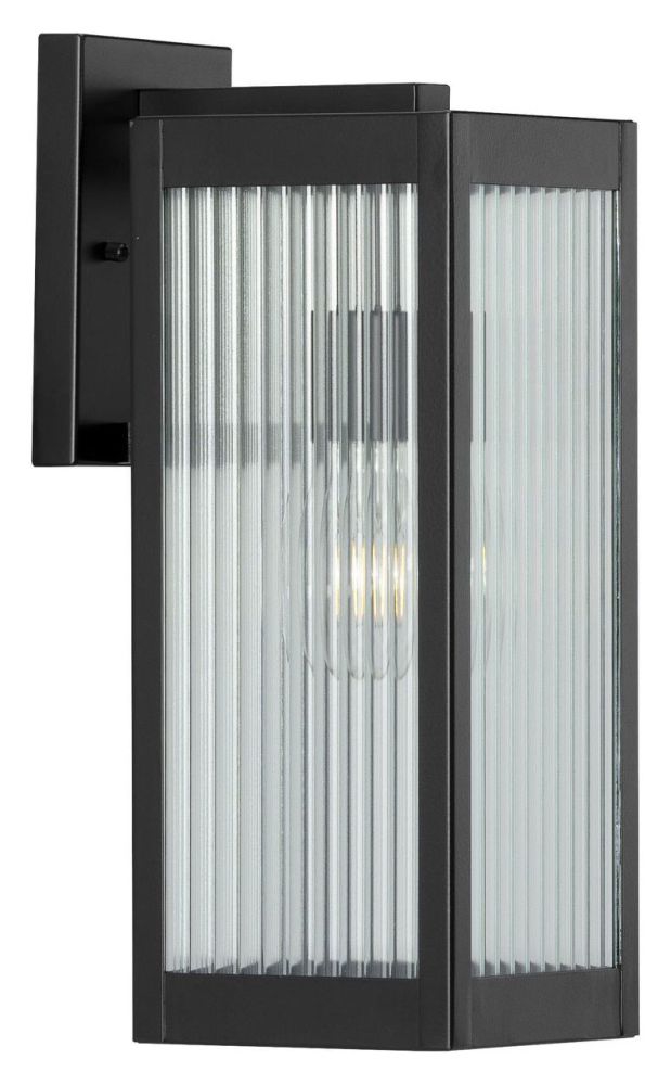 Progress Lighting Felton Collection 1-Light Clear Ribbed Glass Craftsman Outdoor Medium Wall Lantern Light Matte Black