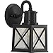 Progress Lighting Seagrove Collection 1-Light Clear Seeded Glass Farmhouse Outdoor Small Wall Lantern Light Textured Black