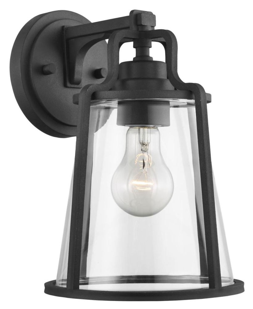 Progress Lighting Benton Harbor Collection 1-Light Clear Glass Urban Industrial Outdoor Medium Wall Lantern Light Textured Black