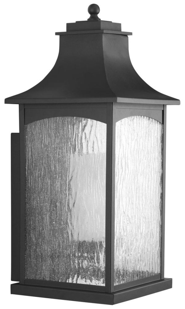 Progress Lighting Maison Collection 1-Light Clear Water Seeded Glass Farmhouse Outdoor Extra-Large Wall Lantern Light Textured Black