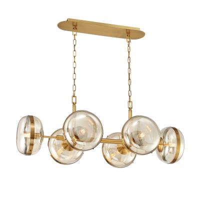 Eurofase 38130-014 Nottingham Industrial Champagne Glass Orbs Island Chandelier, 6-Light 360 Total Watts, 18" H x 21" W x 44" L, Ancient Brass