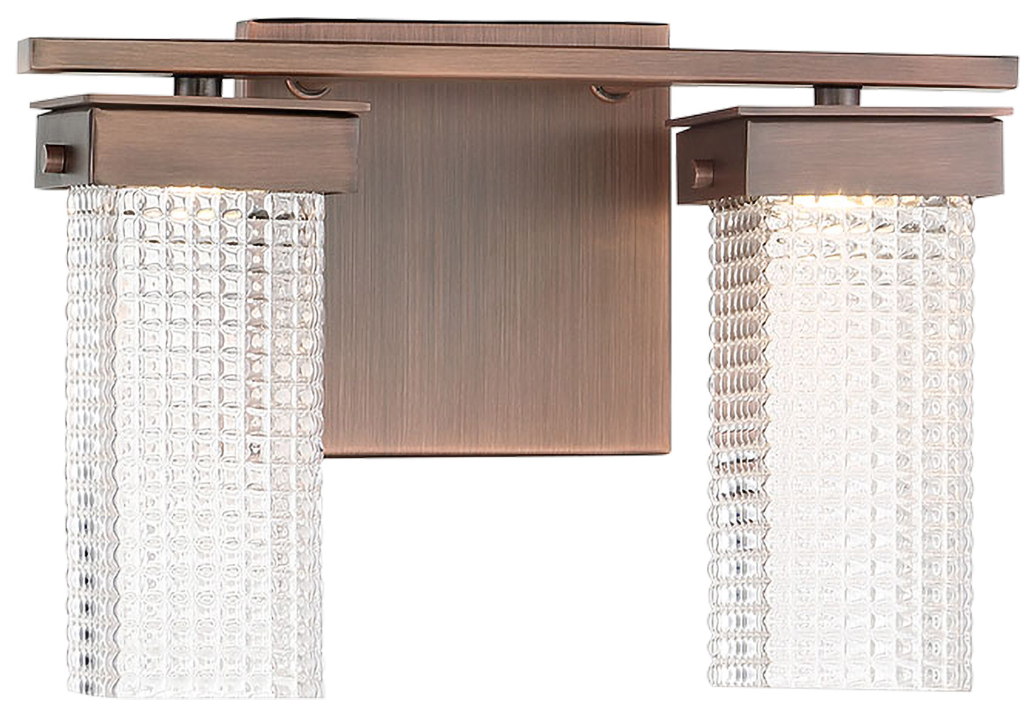 Minka Lavery 4902-267-L Dewberry Lane Clear Seedy Glass LED Bath Vanity Wall Mount, 2-Light 16 Total Watts, Dark Brushed Bronze, 8"H x 12"W