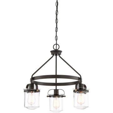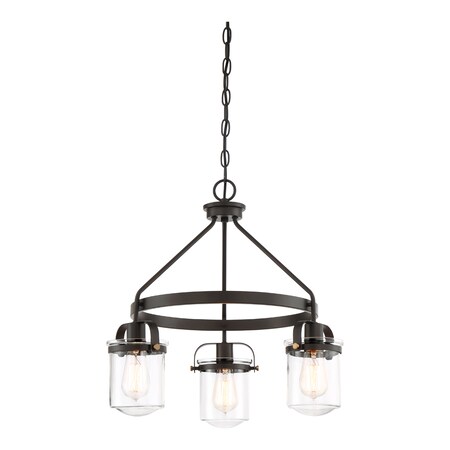 DESIGNERS FOUNTAIN Jaxon 3-Light Oil Rubbed Bronze Industrial Chandelier with Clear Glass Shades for Dining Rooms, 90683-ORB