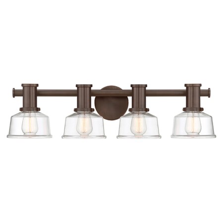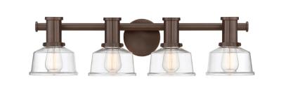 - Modern contemporary four-light metal bath light from the Carson collection by Designers Fountain.