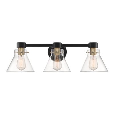 - Industrial style three-light bathroom vanity light with a touch of mid-century design, from the Willow Creek collection by Designers Fountain.