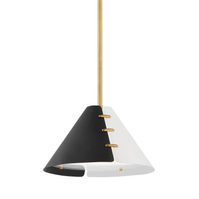 Split by Kelly Behun 1-Light Small Pendant - Aged Brass Finish - Black/White Shade