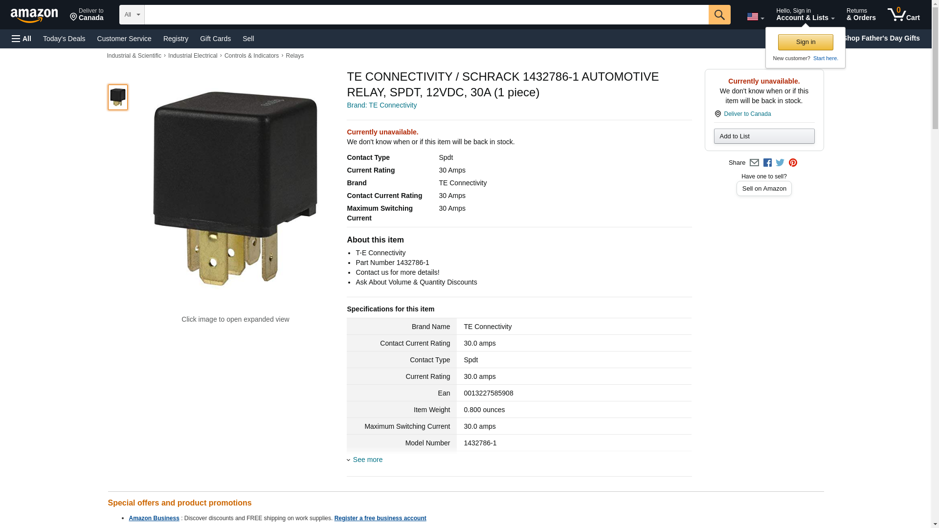 | Feature | TE CONNECTIVITY / SCHRACK 1432786-1 AUTOMOTIVE RELAY, SPDT, 12VDC, 30A |
