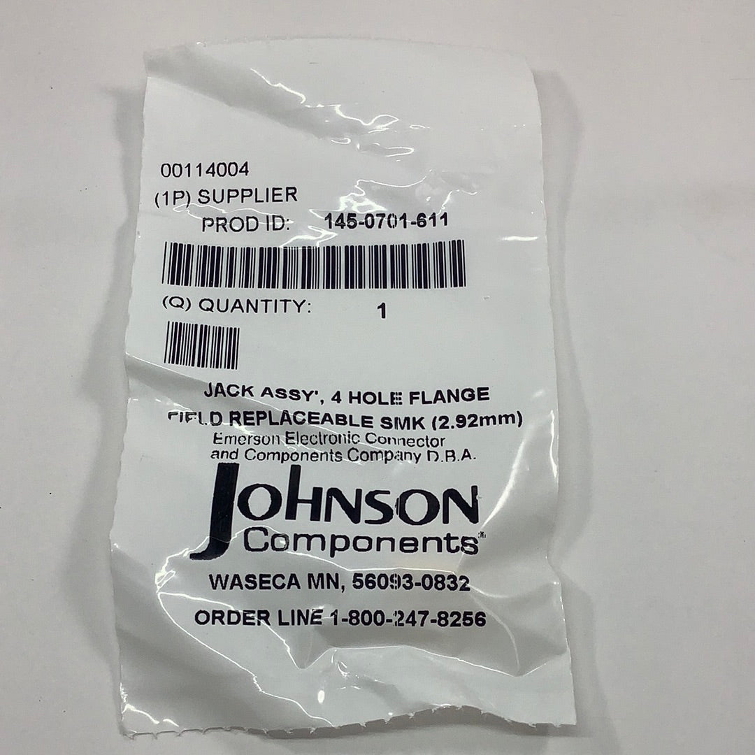 Johnson Cinch Connectivity Rf/coaxial, Smk Jack, Straight, 50 Ohm - 145-0701-611